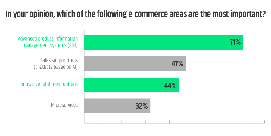 Asked “what area of B2B e-commerce is vital for success”, the surveyed responded strongly in one voice: advanced product information management systems (Product Information Management, PIM).
