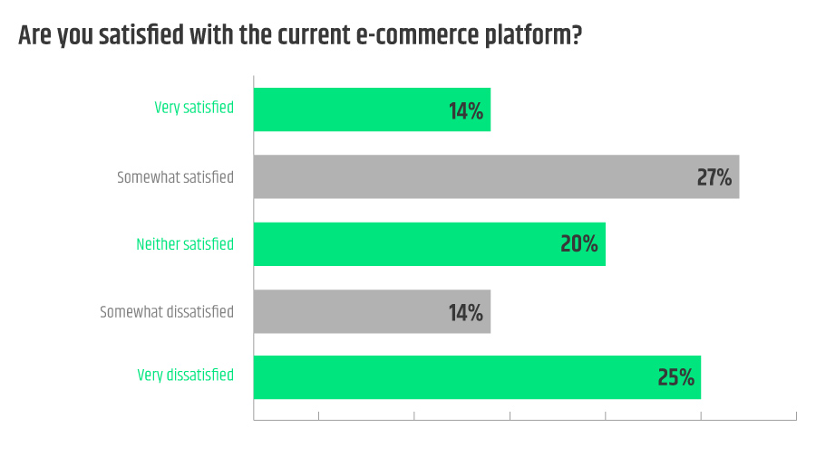 When the surveyed were asked how they liked the existing B2B e-commerce systems used in their companies, 14% admitted to be "very satisfied" and 27% said they were "quite satisfied". The gap between the content and the dissatisfied ones is not that wide, as 25% declare to be "completely dissatisfied" with the implemented solution.