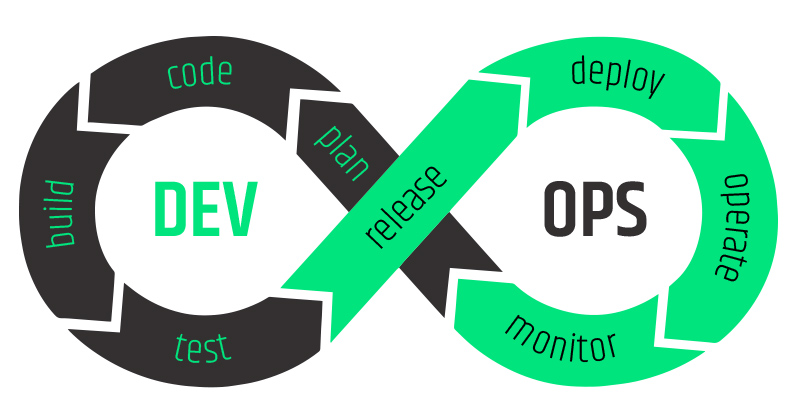 The entire life cycle of an application, with its key areas overlapping, is illustrated by a classic drawing resembling the symbol of infinity.