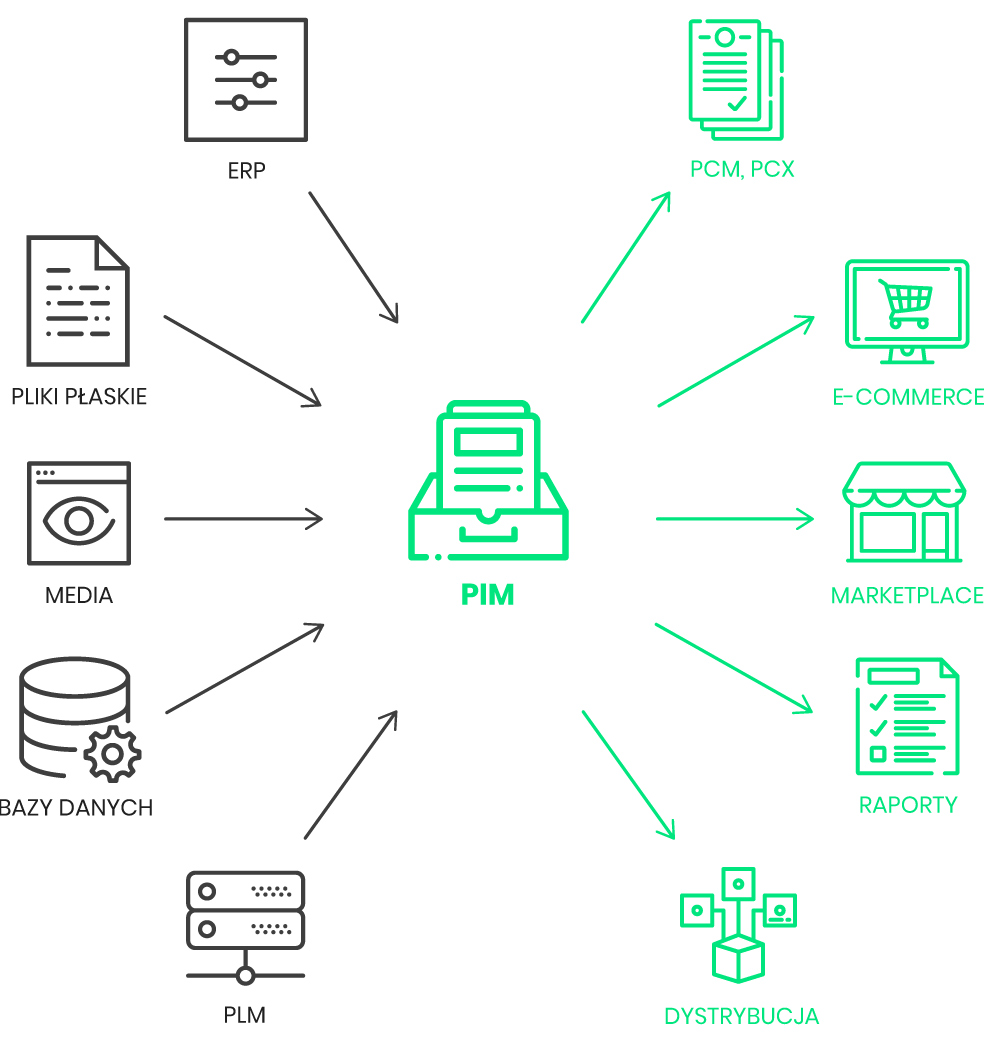 PIM systems collect and consolidate product information from many sources and enable its publication in various channels. With PIM, you can: