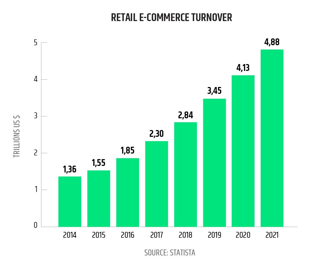 If you own a medium-sized business, or you’re responsible for its sales, consider this: e-commerce turnover surpassed 2.3 trillion US dollars in 2017 and is expected to reach over 4.8 trillion by 2021 - that’s 100%+ growth in just 4 years!