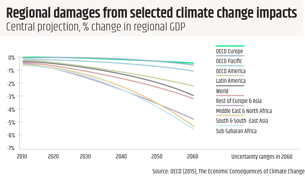 - The cost associated with switching the world economy to a low-emission model, e.g. closing down coal mines and abandoning oil.