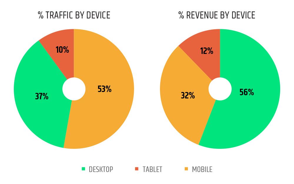 E-commerce can benefit from PWA in another way. Usually, customers switch from mobile to desktop to finish the transactions - 53% of traffic coming to online stores via mobile, yet this builds just 32% of revenue. One of the greatest pains is payments done inconveniently.