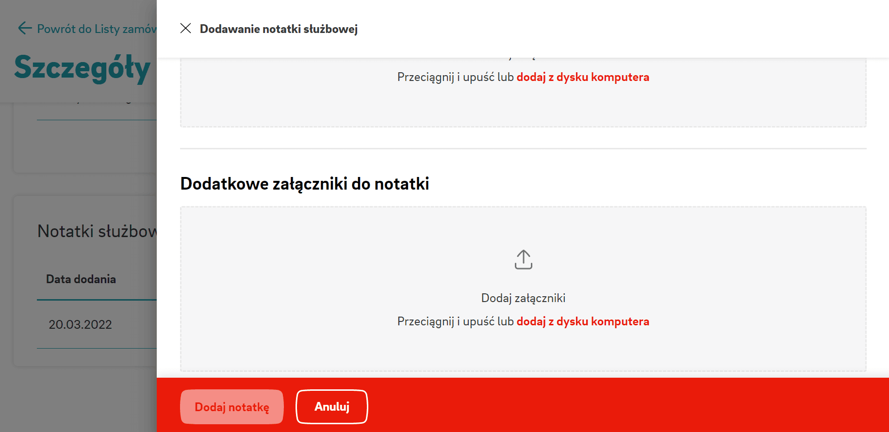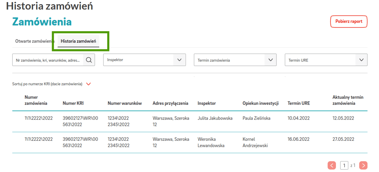 The tab "order history" contains the list of completed orders. In functional terms, browsing, filtering and sorting orders is done the same way as in "open orders". The tab does not, however, allow for new entries or files to be added or deleted, with one exception - the possibility of adding business notes.