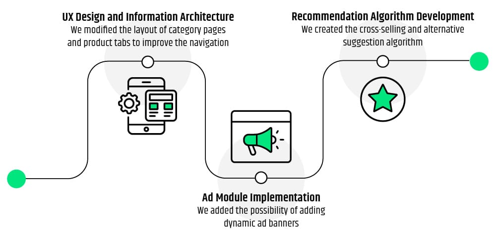 The new way of presenting the product range has also led to increased sales of private labels such as Senja, Gepetto and Siyu. Thanks to the new ad module and the implemented recommendation mechanism, they have become more visible on the website. Thanks to the implemented solutions, customers are less likely to abandon their carts, even if their initial choice is not available.